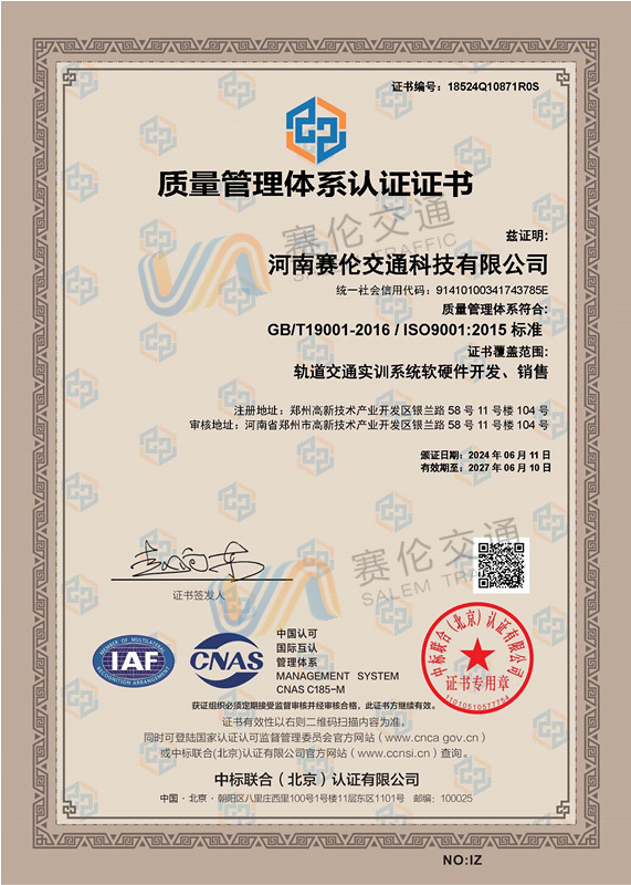 质量管理体系认证证书