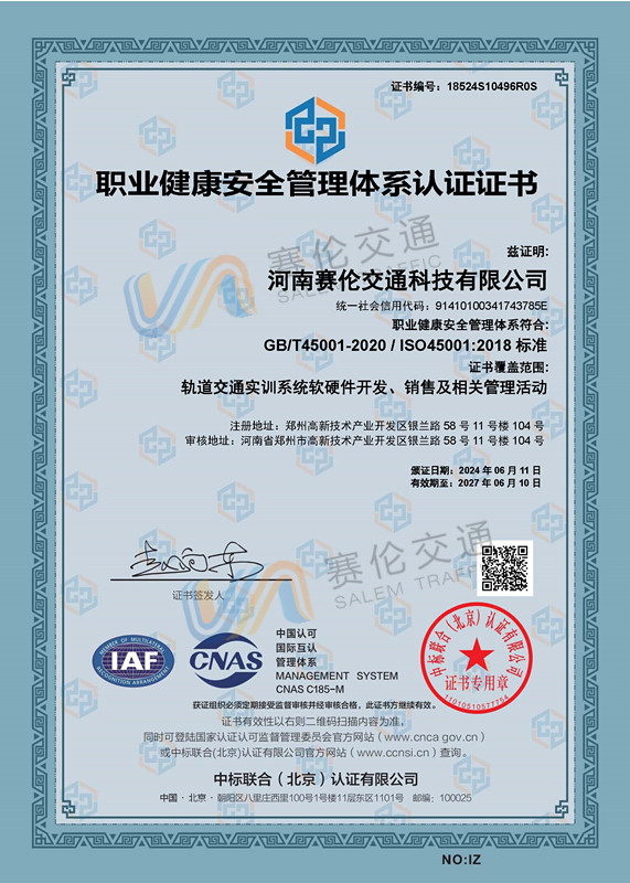 职业健康安全管理体系认证证书