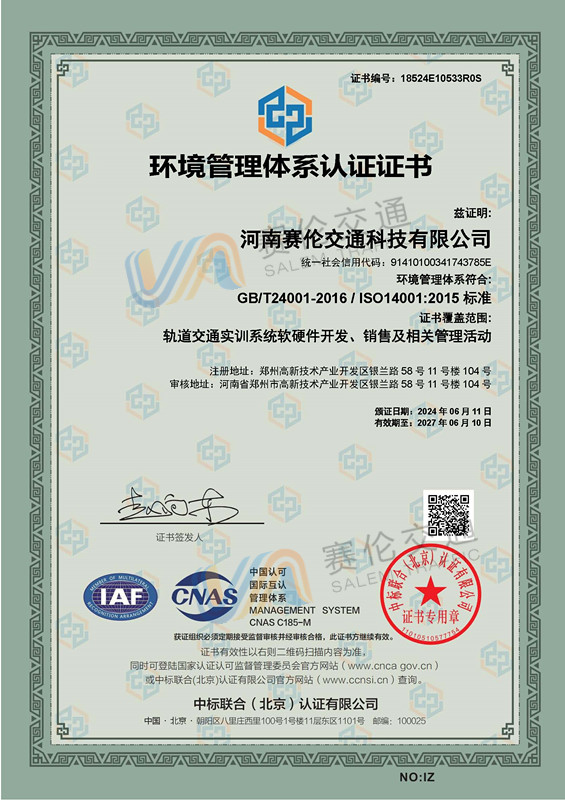 环境管理体系认证证书